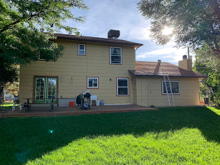 My hubby recently finished painting the outside of our house! We are really pleased with it. It took about 6 weeks, of us (mostly him) working on Saturday, or his day off. Sometimes he worked a little on Sunday afternoons too.